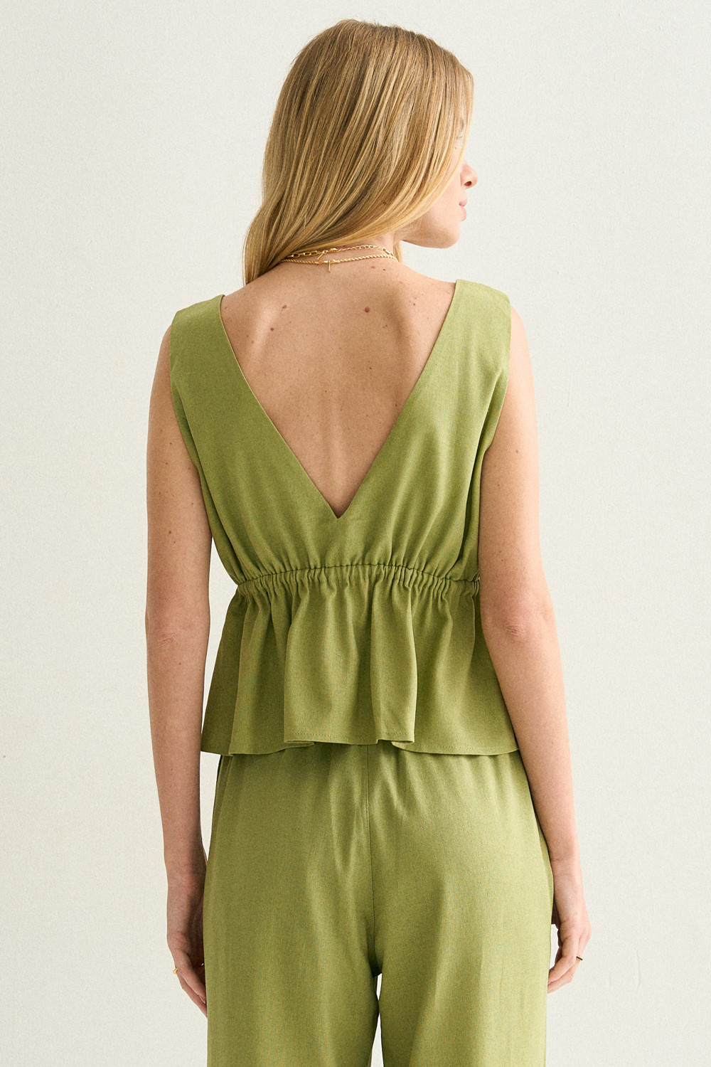 A Regata Serena une delicadeza e sofisticação em uma peça leve e versátil. Com decote em V profundo, amarração no busto e barra com babado, ela valoriza a silhueta com feminilidade e charme. Confeccionada em viscose com linho, tem toque leve e natural, sendo perfeita para compor looks frescos, elegantes e atemporais.