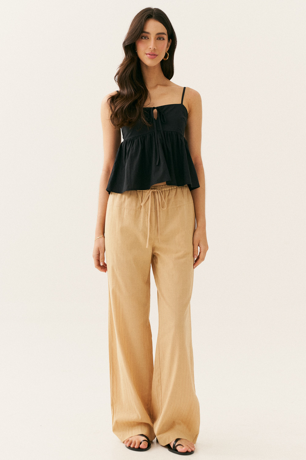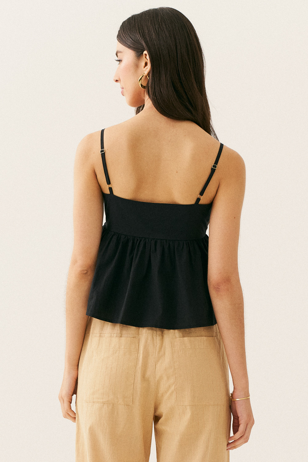 A Regata Diana possui modelagem soltinha e toque leve, perfeito para dias quentes. Conta com alças finas reguláveis, que garantem melhor ajuste ao corpo e decote com amarração delicada que traz charme extra à peça. A parte inferior tem caimento fluido com babado leve, proporcionando movimento e conforto. Além disso, a peça conta com zíper invisível na lateral trazendo praticidade e melhor acabamento.
