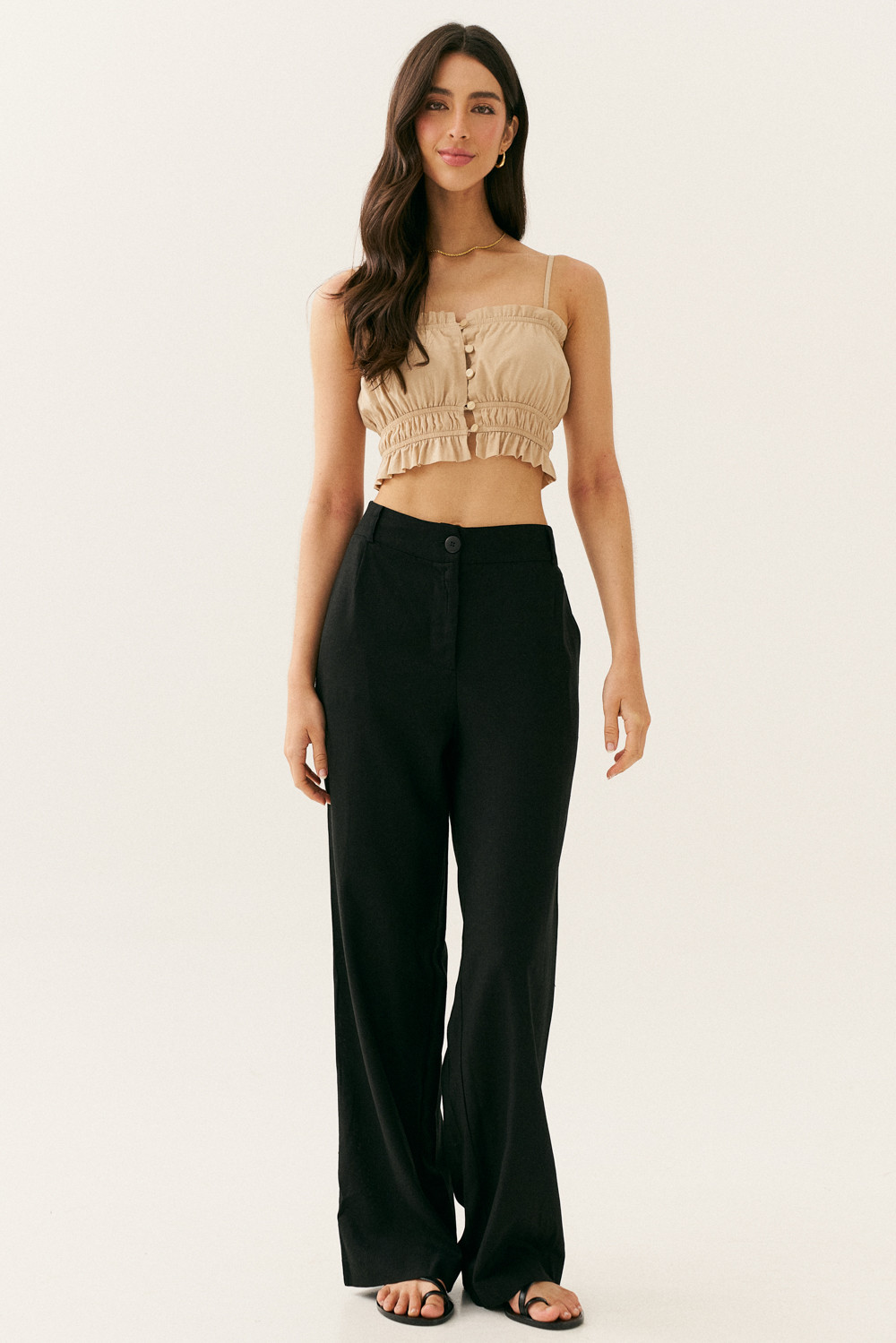 O Top Lais conta com elástico embutido em todo o contorno, garantindo ajuste confortável ao corpo, enquanto os detalhes franzidos adicionam charme à peça. As alças reguláveis permitem caimento personalizado, e o fechamento frontal por botões combina praticidade com um toque clássico e feminino.